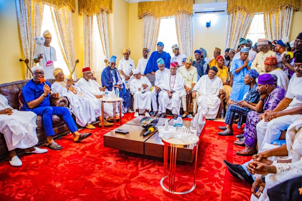 The delegation, led by the Deputy Governor, Barr. Abdulraheem Bayo Lawal, included the Otun Olubadan of Ibadanland, Senator Rashidi Ladoja; former Deputy Governor and PDP Deputy National Chairman, Amb. Taofeek Arapaja; former deputy governors, Barr Hazeem Gbolarumi and Engr Hamid Gbadamosi; member representing Ibadan North-East/South-East Federal Constituency, Hon. Abass Adigun Agboworin; and Aare Musulumi of Yorubaland, Edo and Delta States, Alhaji Dawodu Makanjuola.
