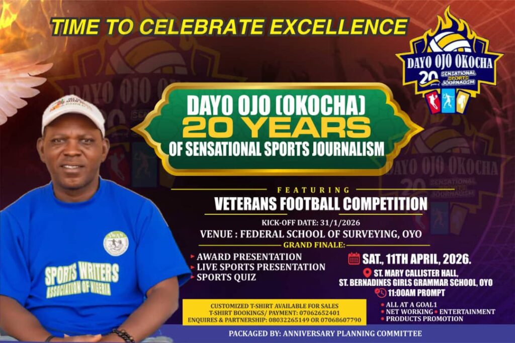 The event underscores Dayo Ojo’s two-decade contribution to Nigerian sports journalism, particularly at the grassroots and veterans level, while using football as a unifying platform to celebrate excellence, discipline, and sports heritage.
