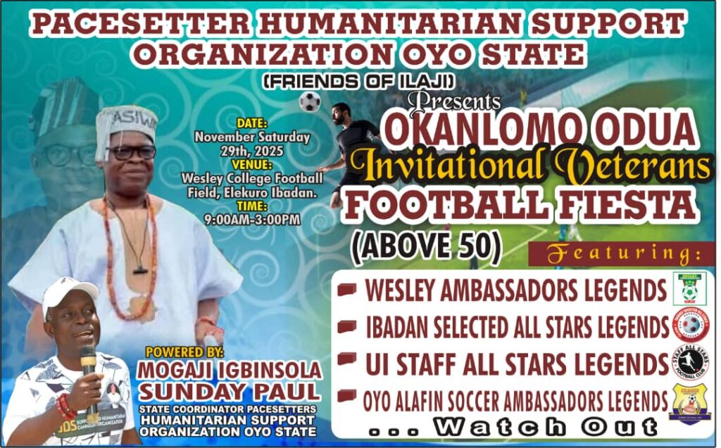 The novelty football games” tagged “Above 50 football fiesta” will feature some prominent ex -footballers ,who are in their Golden age to celebrate with the Community figure and a business mogul across the South West States. The football matches will hold on Saturday, 29th November, 2025 at Wesley College, Elekuro, Ibadan from 9am to 3pm.