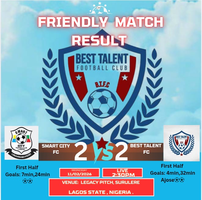 Best Talent Football Club of Mowe on Wednesday played a 2-2 draw against a Lagos based football outfit, Smart City at Legacy Pitch, Surulere, Lagos.